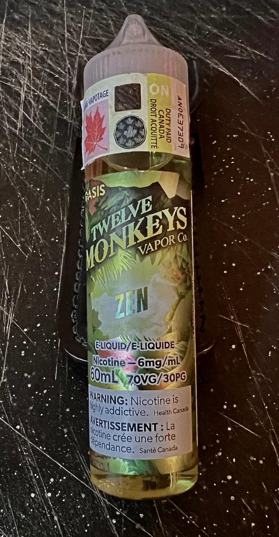 Zen by Twelve Monkeys E-Juice - Experience the gift of ZEN as you revel in the refreshing taste of luscious honeydew melon exquisitely mixed with succulent slices of pineapple and smooth ripe bananas!