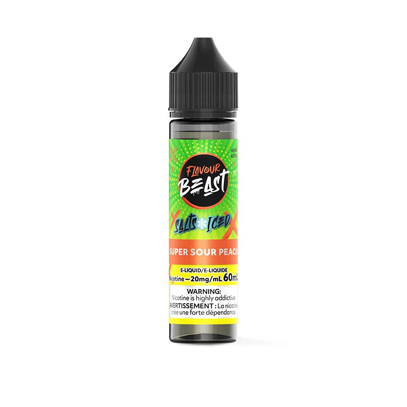 Super Sour Peach Iced Salt by Flavour Beast E-Liquid - Revel in the juicy layer of ripe peaches, heightened by a tantalizing sourness and a chilly blast of menthol.